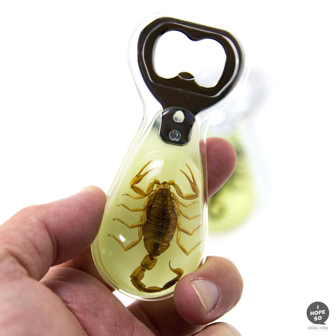 暗闇の中で光るGLOW IN THE DARK BOTTLE OPENERになります。