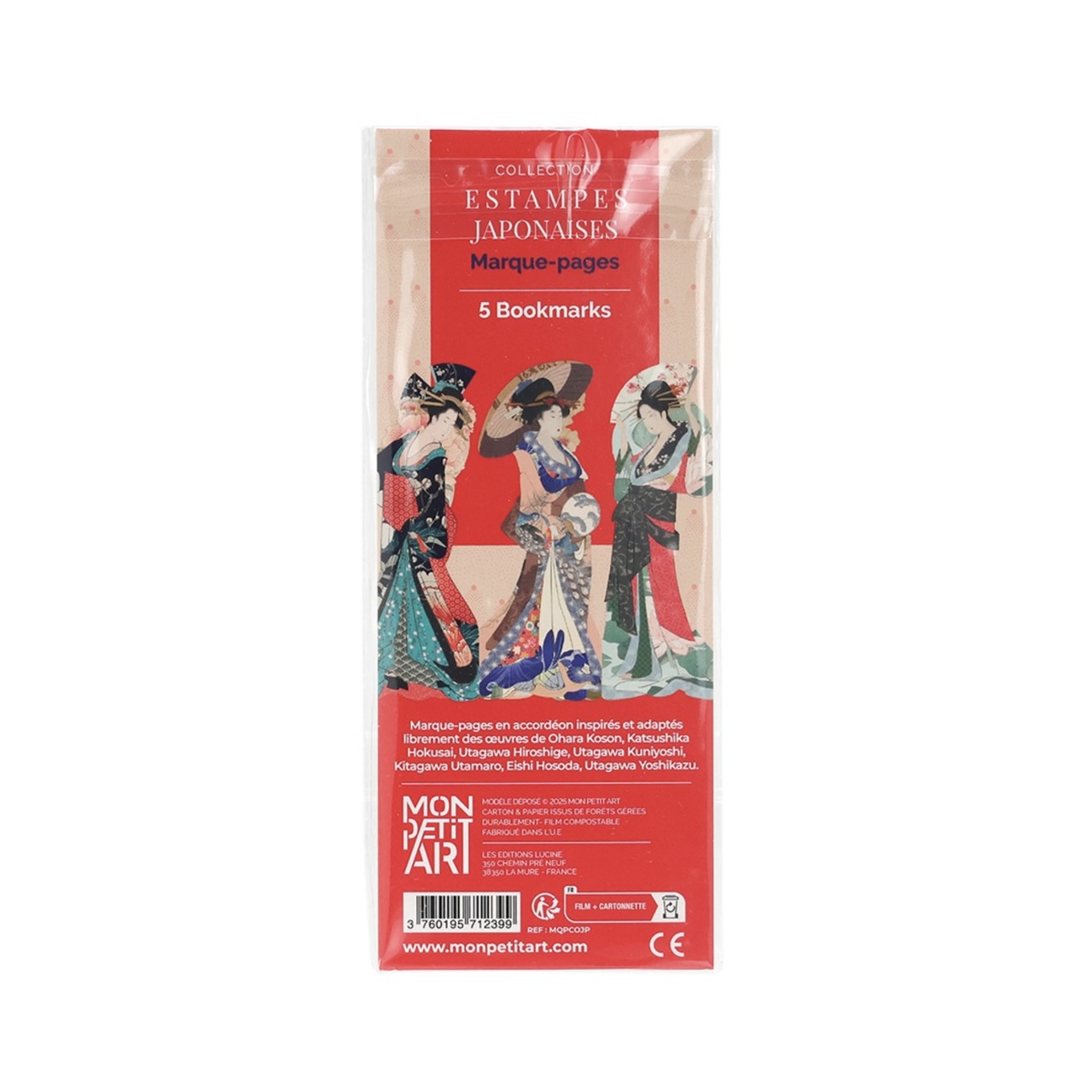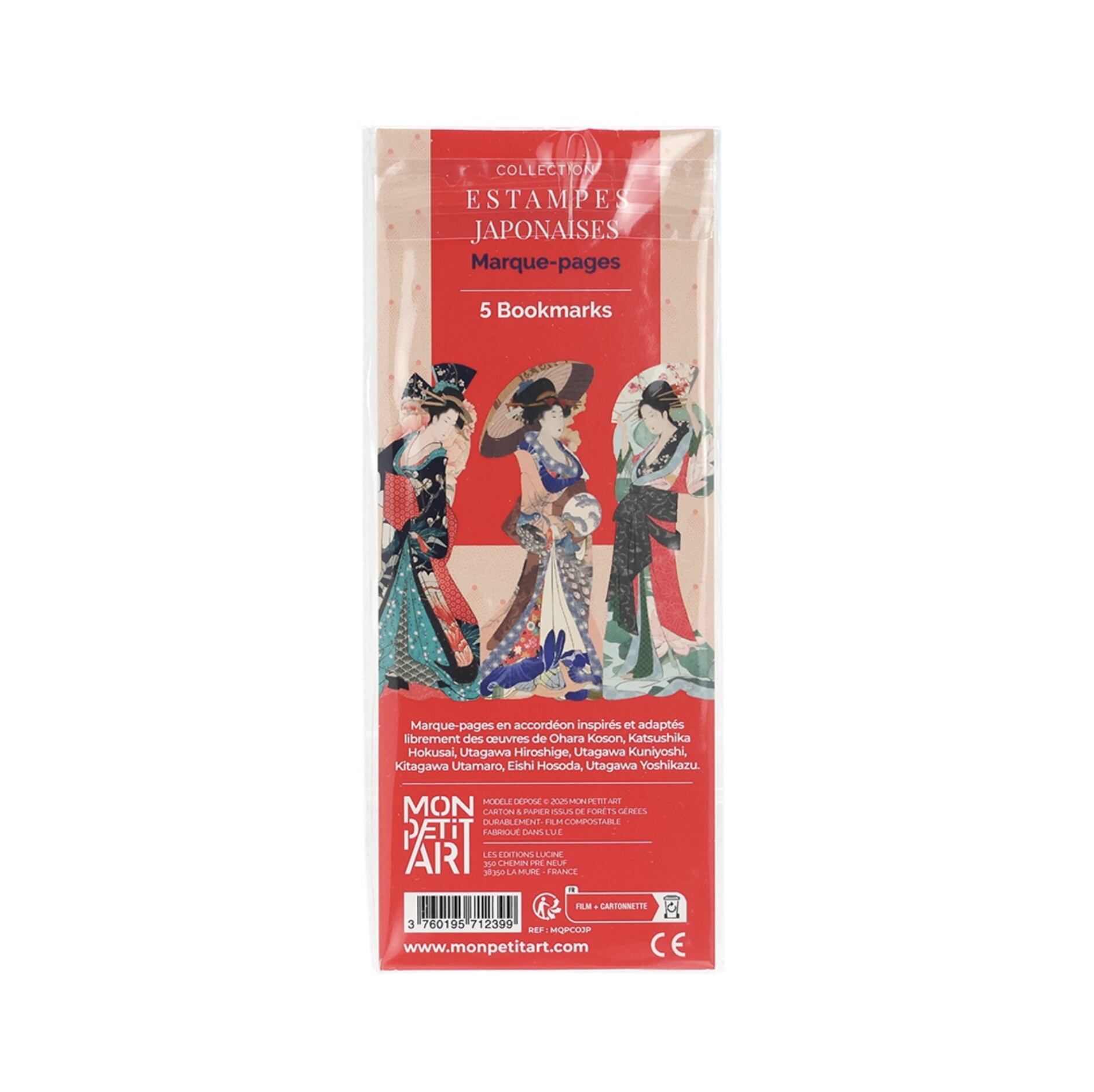 フランスのブランド MON PETIT ART が手がけた、浮世絵にインスピレーションを得たブックマーク(しおり)5枚セットになります。