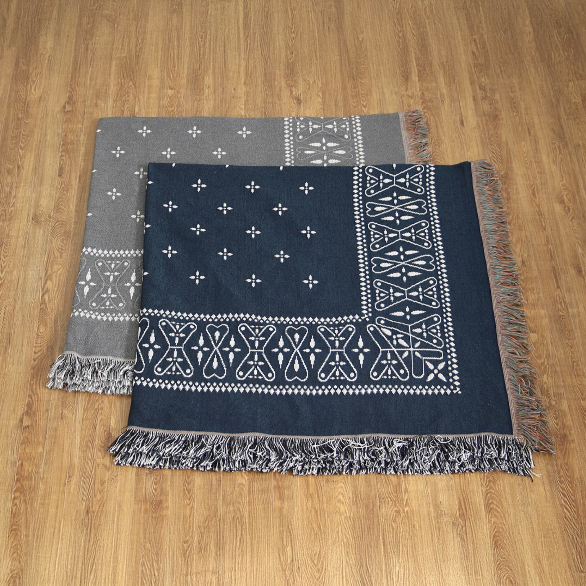 約150×150cmのゆとりあるサイズで、ブランケットとして羽織るほか、ソファやベッドカバー、ラグマット、テーブルクロス、タペストリーとしても活躍します。