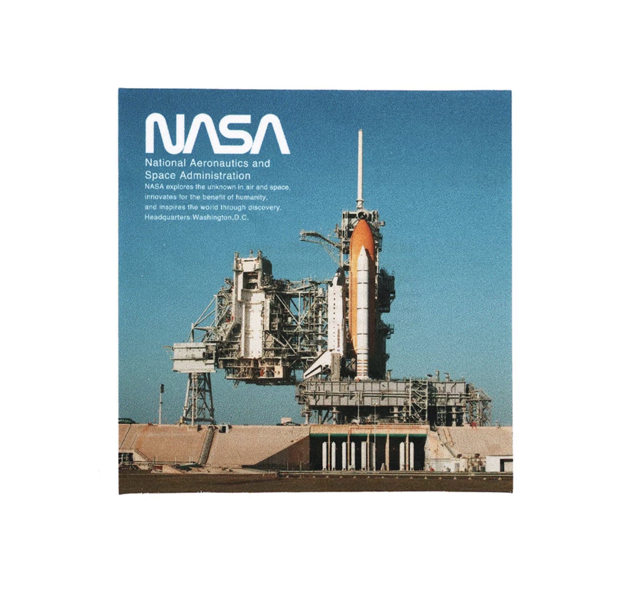NASAの象徴的なミートボールロゴとスペースシャトルが宇宙へ飛び立つ直前の発射台の情景を切り取ったデザインに2種類をご用意しました。