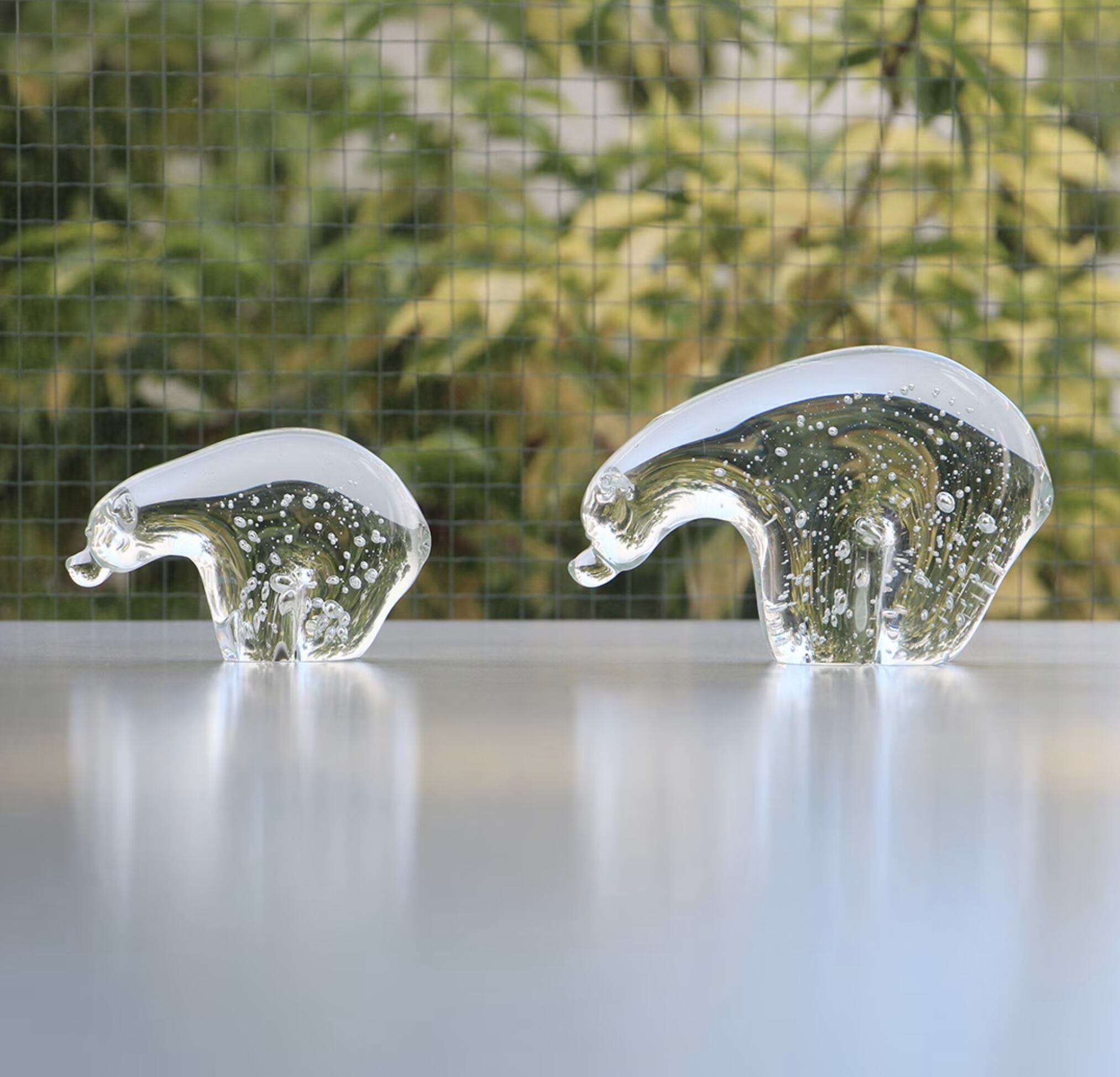 ホッキョクグマ(シロクマ)の体毛が透明なストロー状である構造に着想を得て生まれた、クリアガラスのオブジェになります。