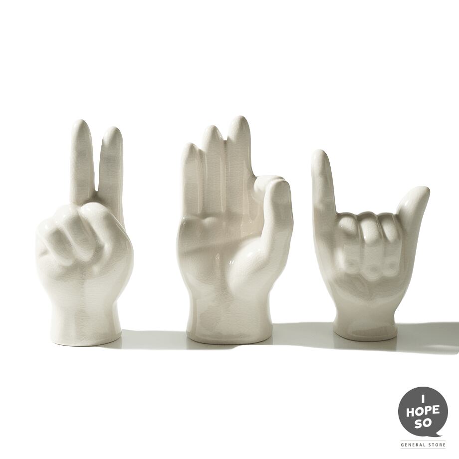 70年代によく見かけた木製ハンドオブジェを貫入入りの陶器にて製作。