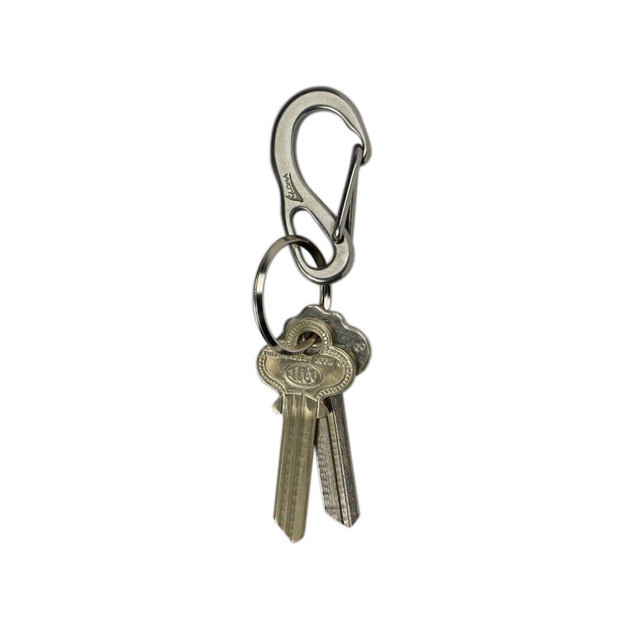 カラビナタイプは、1501・1502の2サイズ展開になっており、シングル使いはもちろん、様々なシャックルと組み合わせ、そのままベルトフックやバックパックに取り付けるだけでボリュームが増し、重厚かつスタイリッシュなキーリングに。