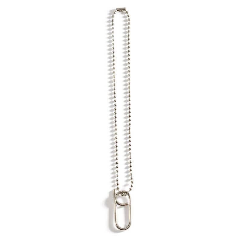 クリップのような形をしたシンプルなニッケル製のキーリングになります。